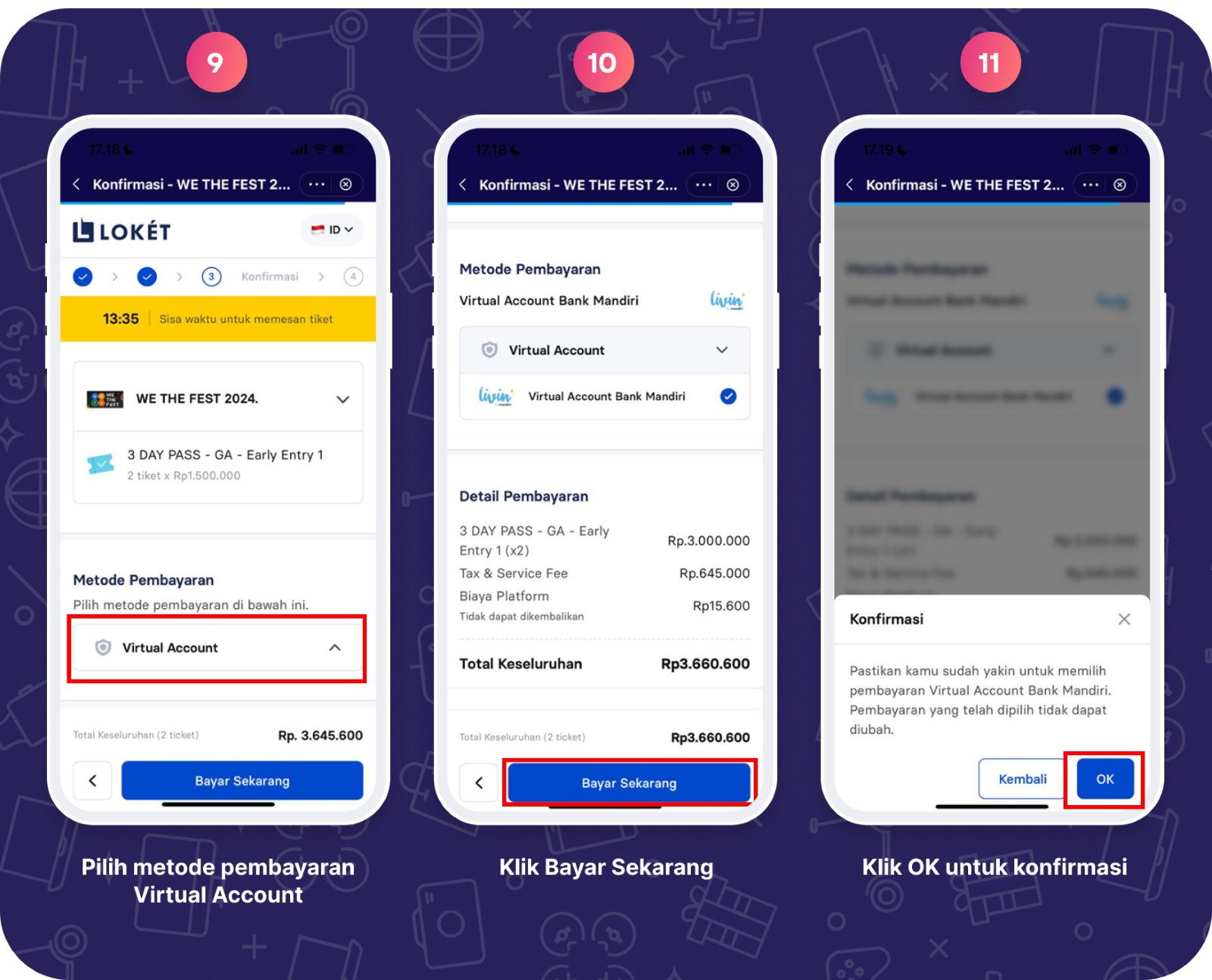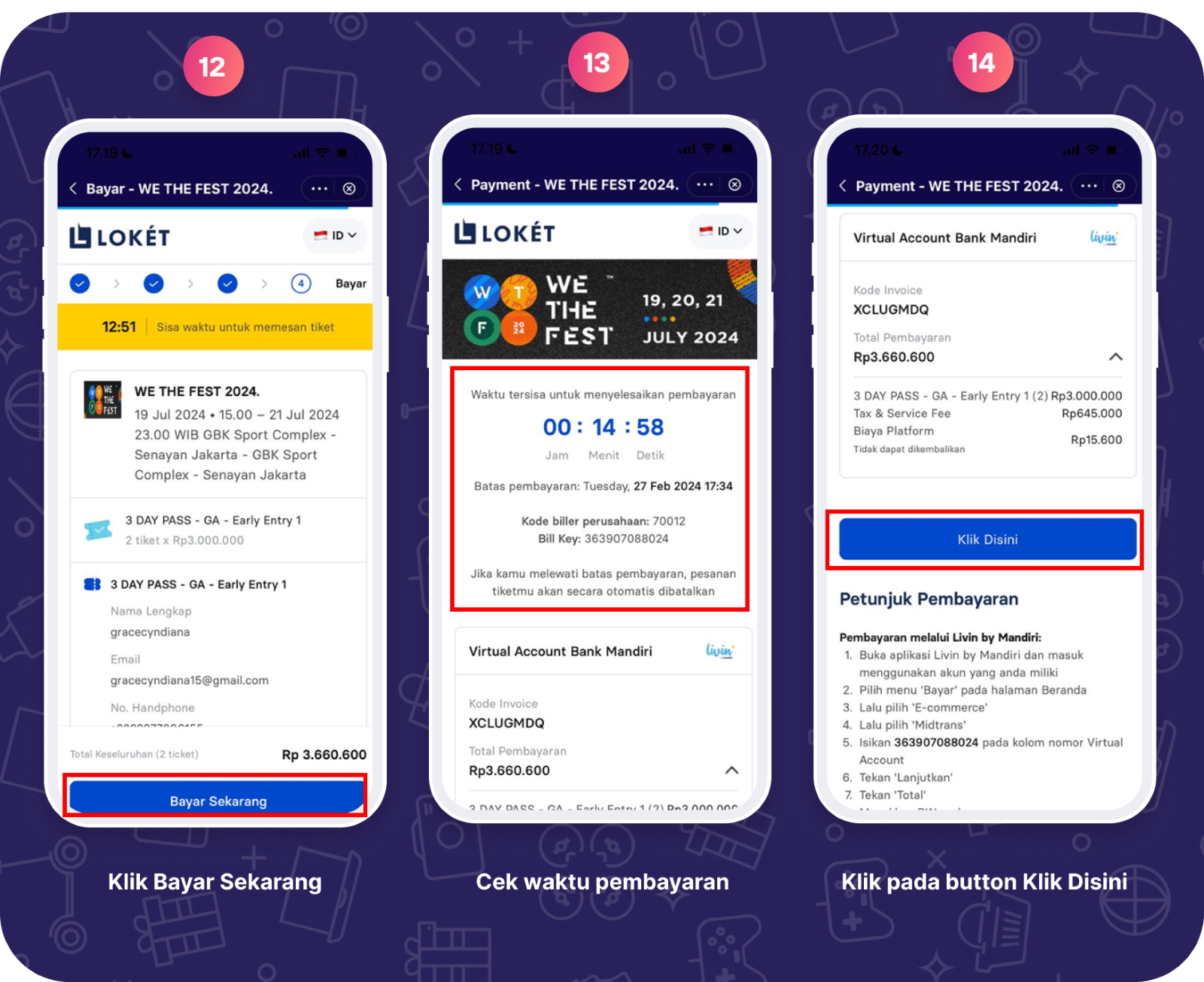Apabila terjadi kendala pada proses pembayaran saat transaksi pembelian tiket event ini menggunakan Livin’ by Mandiri (Virtual Account), dan Kartu Kredit Bank Mandiri dapat menghubungi Mandiri Call 14000.
