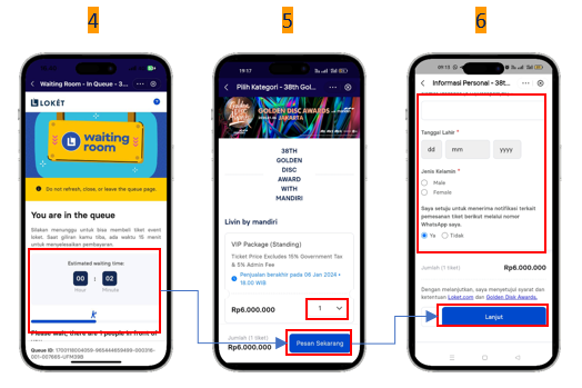 3)    Tap “Join the Queue” untuk bergabung ke dalam waiting room
