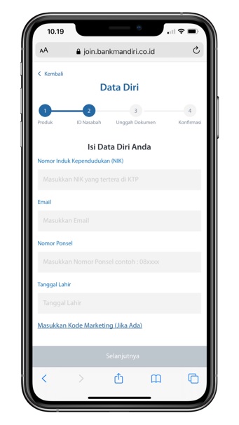 Calon nasabah mengisi “Data Diri” sesuai dengan field yang tersedia dengan memperhatian hal-hal berikut :
