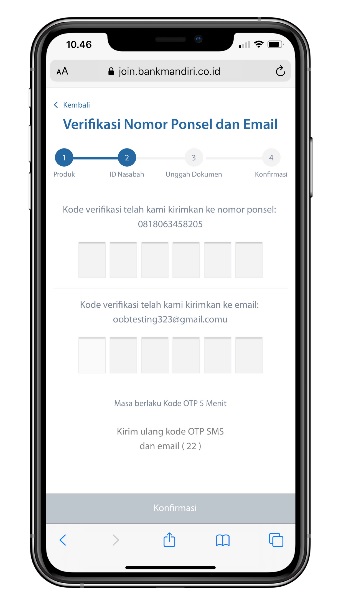 Calon nasabah melakukan verifikasi nomor ponsel dan email dengan memperhatian hal-hal sebagai berikut :