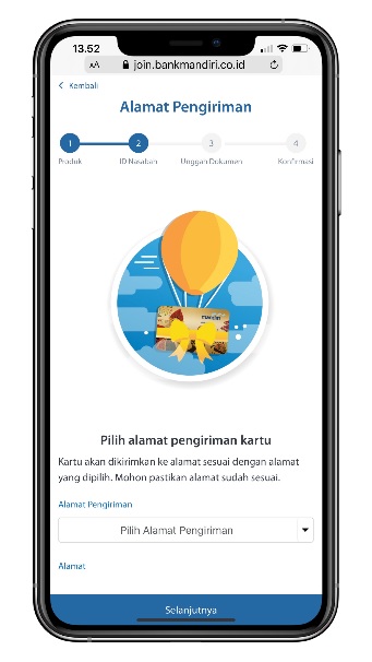 Calon nasabah mengisi alamat pengiriman kartu dengan pilihan :