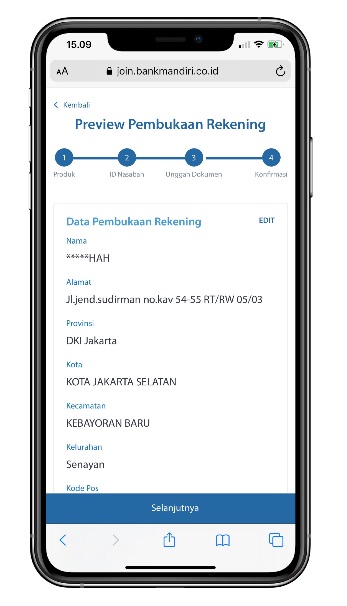 Apabila terdapat data yang belum sesuai, calon nasabah dapat melakukan ‘edit’