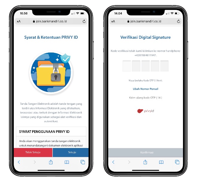 Calon nasabah akan melakukan penandatanganan dokumen secara digital dengan menginput OTP dari penyedia layanan Digital Signature yaitu PrivyID.