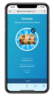 Jika proses pembukaan rekening telah berhasil akan muncul notifikasi pada layar ponsel.