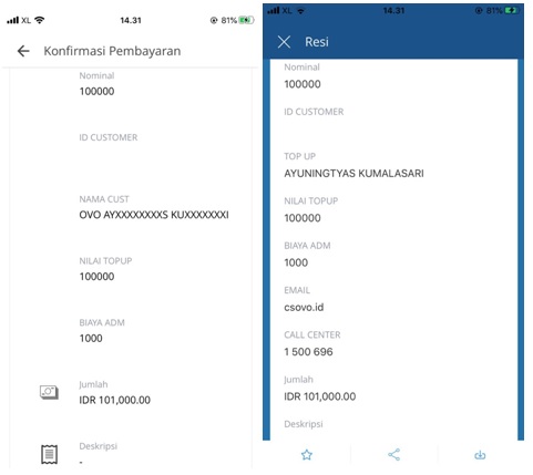 - Layar Konfirmasi pada OVO setelah melakukan Top up :
