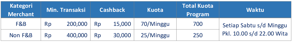 - Program berlaku untuk Nasabah Baru dan Nasabah Eksisting yang bertransaksi di merchant Bank Mandiri.