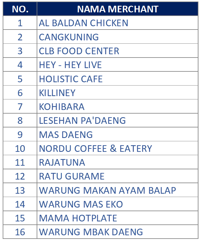 List Merchant yang ikut serta dalam program