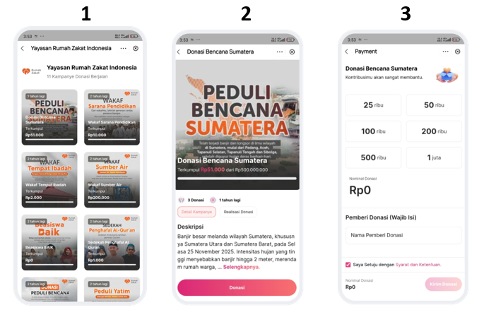 - Tap kategori “Zakat & Donasi” dan tap “Rumah Zakat”