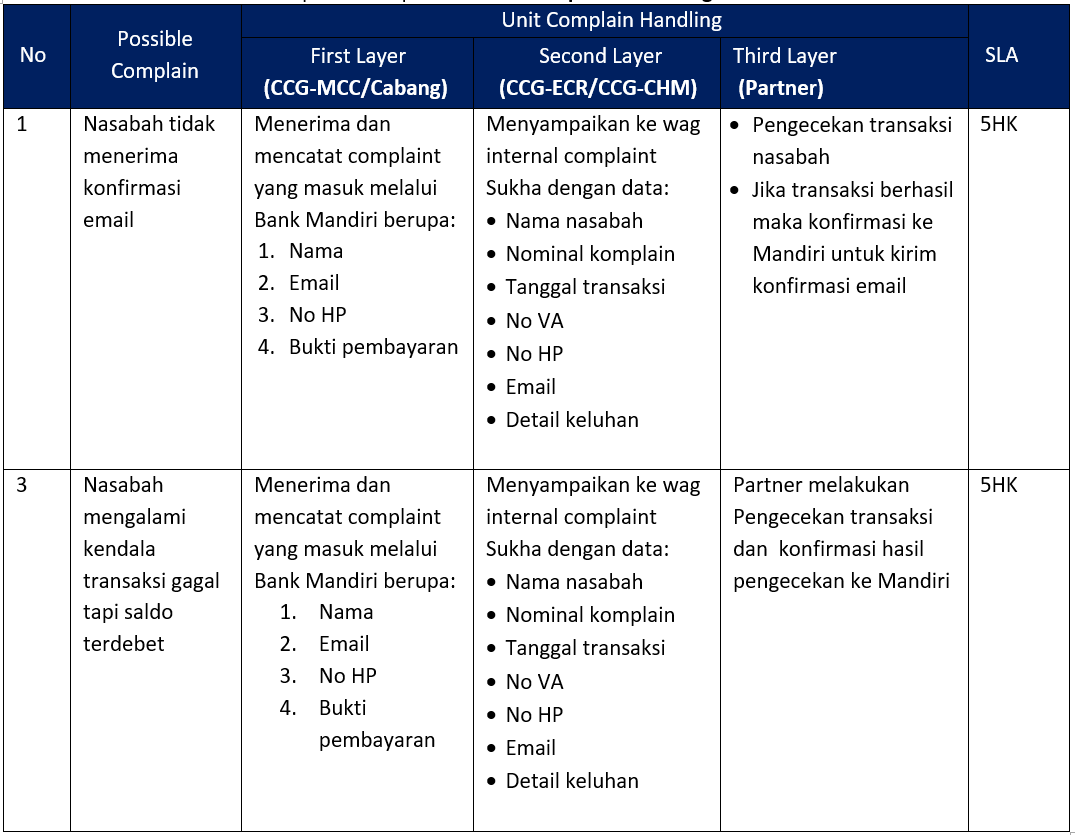 - Pengguna dapat mengajukan pertanyaan dan/atau keluhan melalui Mandiri Call 14000