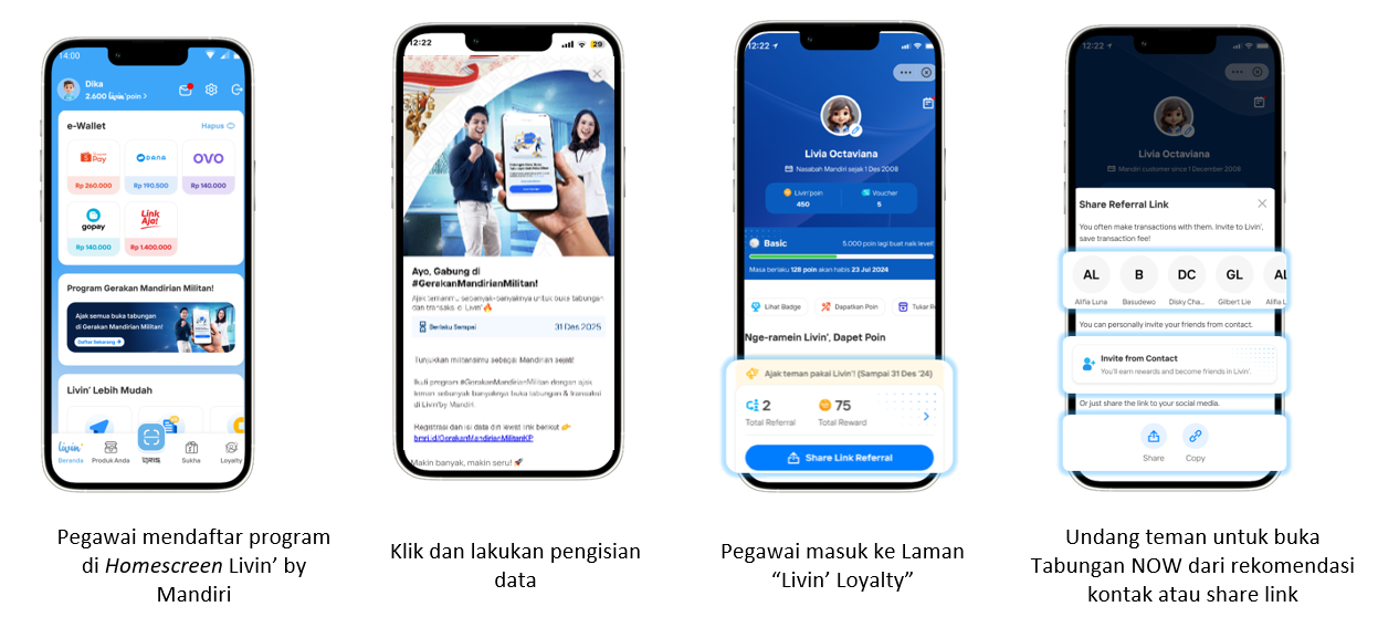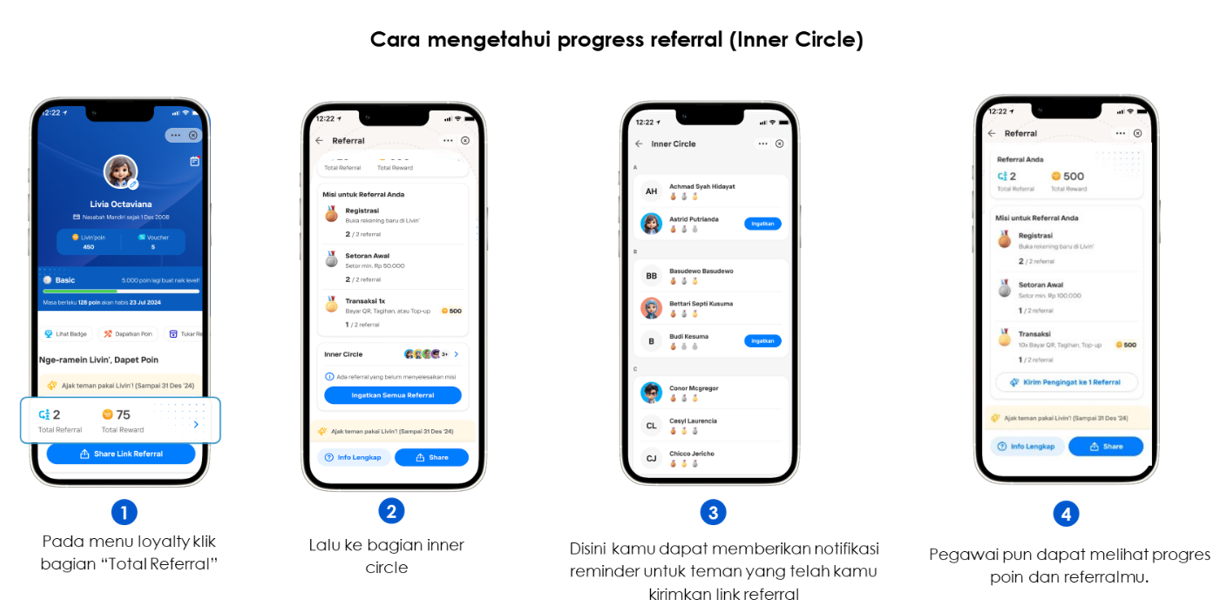 Pegawai dapat melakukan monitoring atas progress referral MGM di Livin’ by Mandiri melalui cara sebagai berikut: