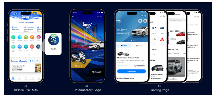 Nasabah dapat mengakses Livin’ Auto di aplikasi Livin’ by Mandiri melalui: