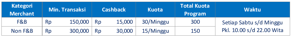 - Cashback dalam bentuk saldo akan di kreditkan ke rekening Nasabah penerima program yang akan diberikan secara realtime.