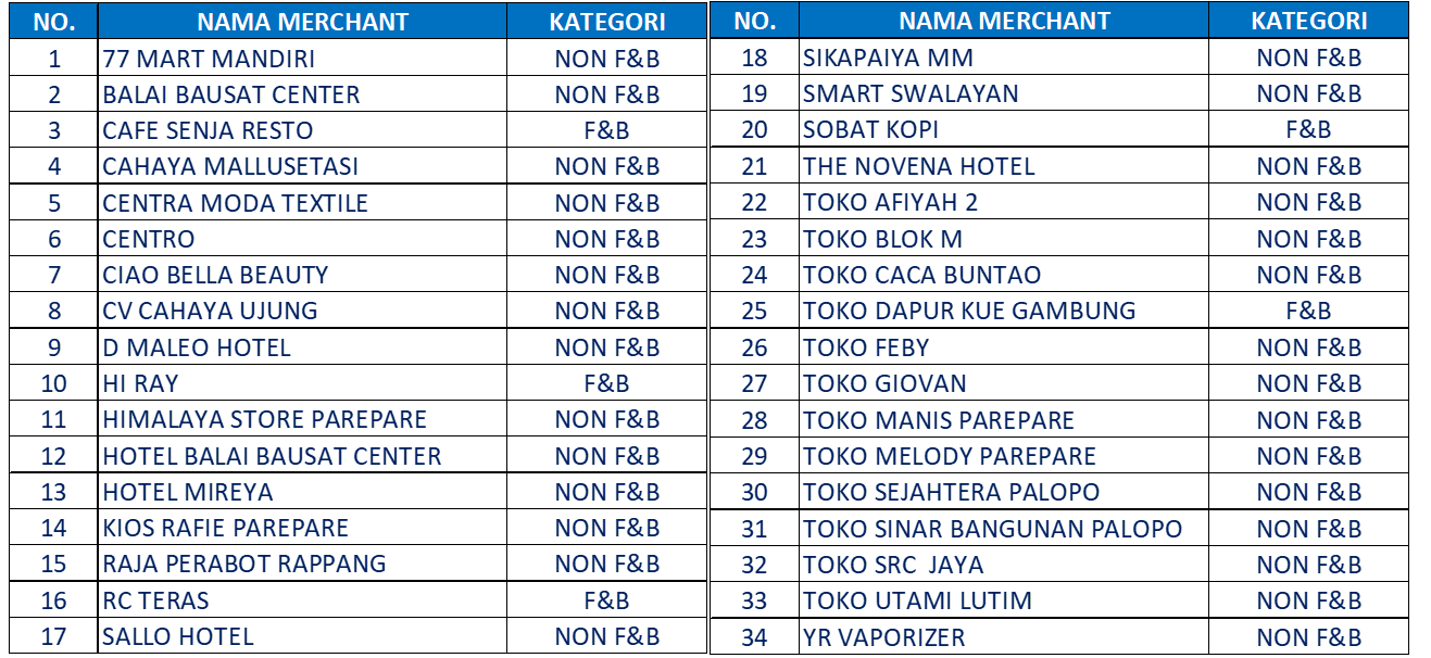 Merchant yang ikut serta dalam program