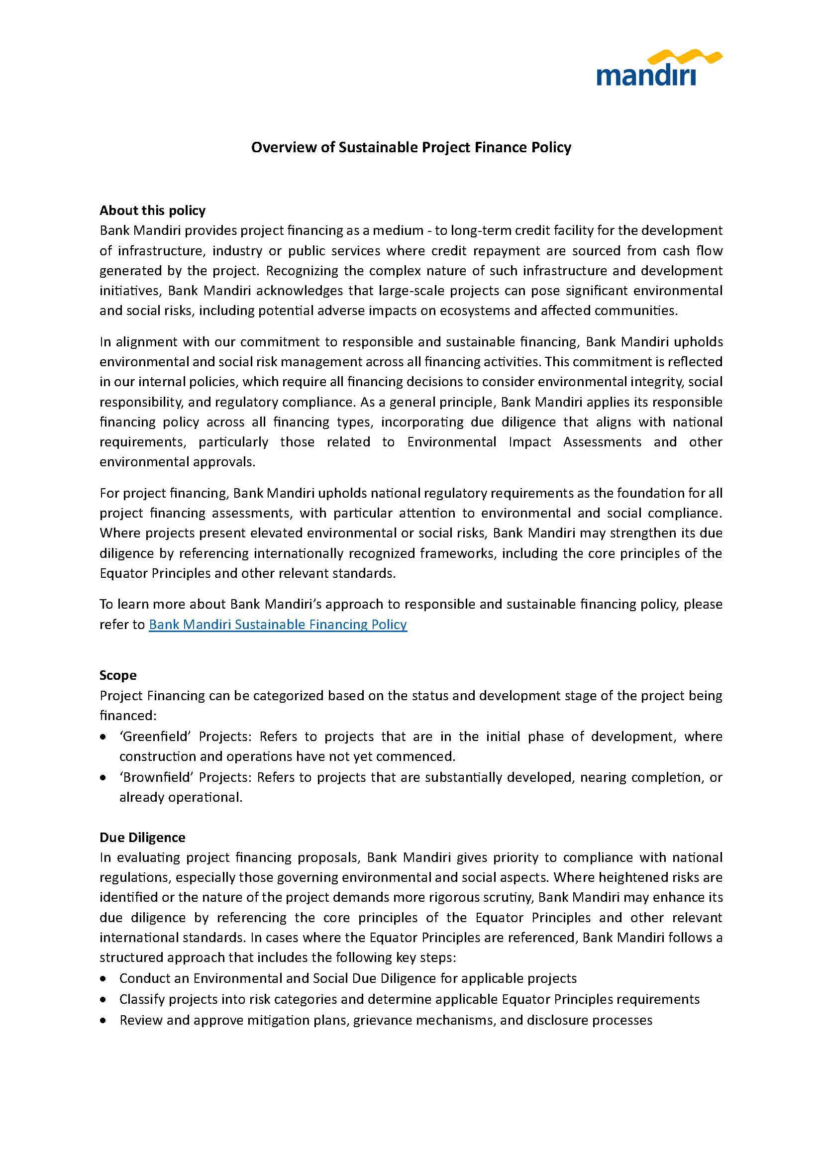 Sustainable Project Finance Policy