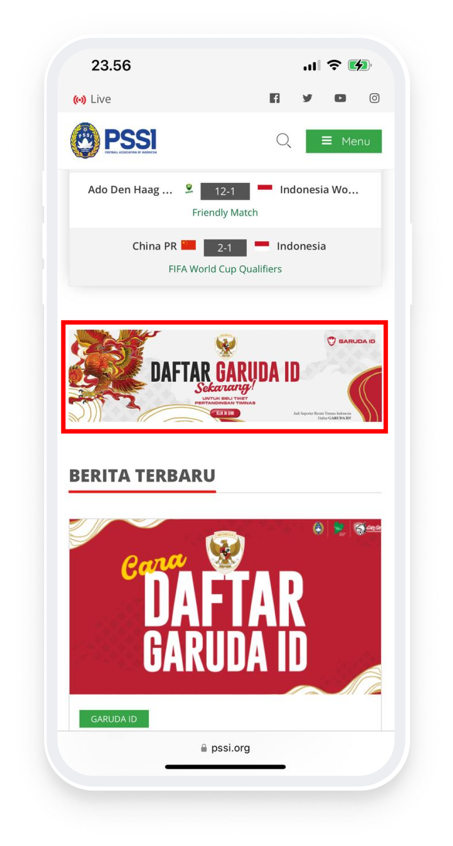 Masuk ke website pssi.org dan klik Banner Garuda ID |