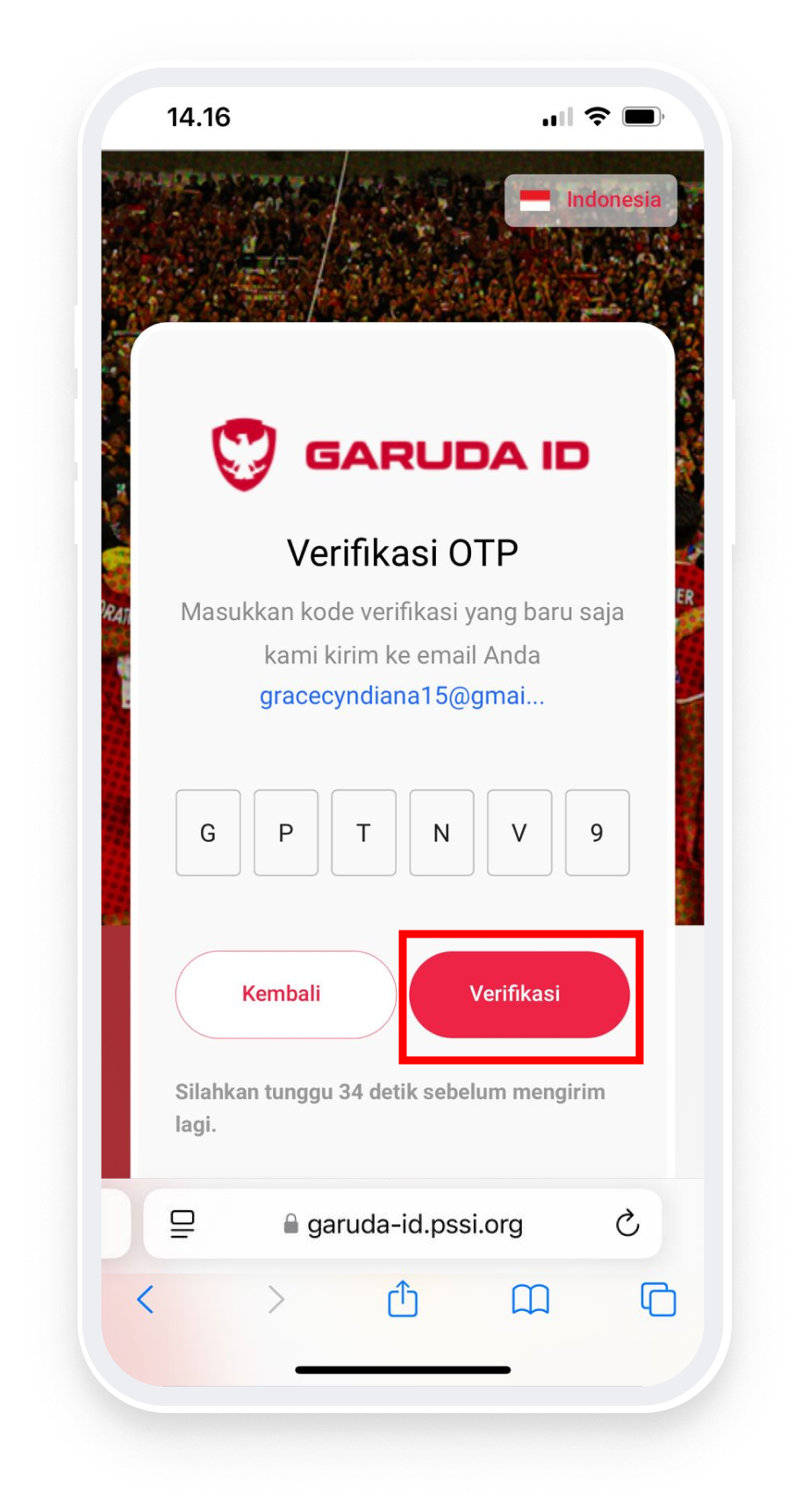 Masukkan kode OTP yang dikirimkan melalui email dan klik Verifikasi |