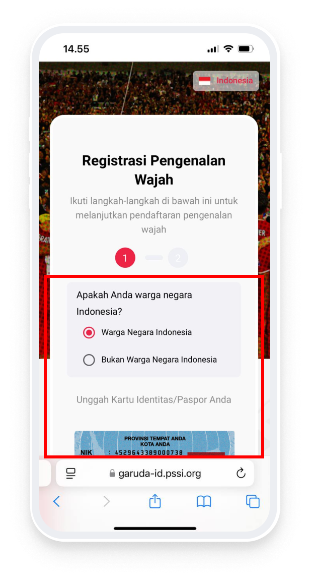 Pada halaman Registrasi pilih Jenis Kewarganegaraan dan upload foto KTP |