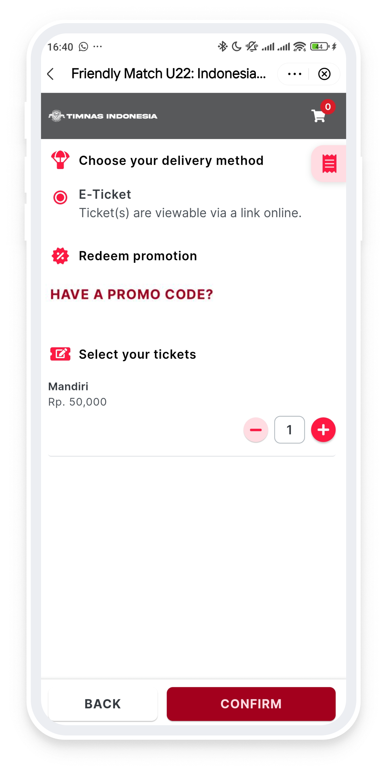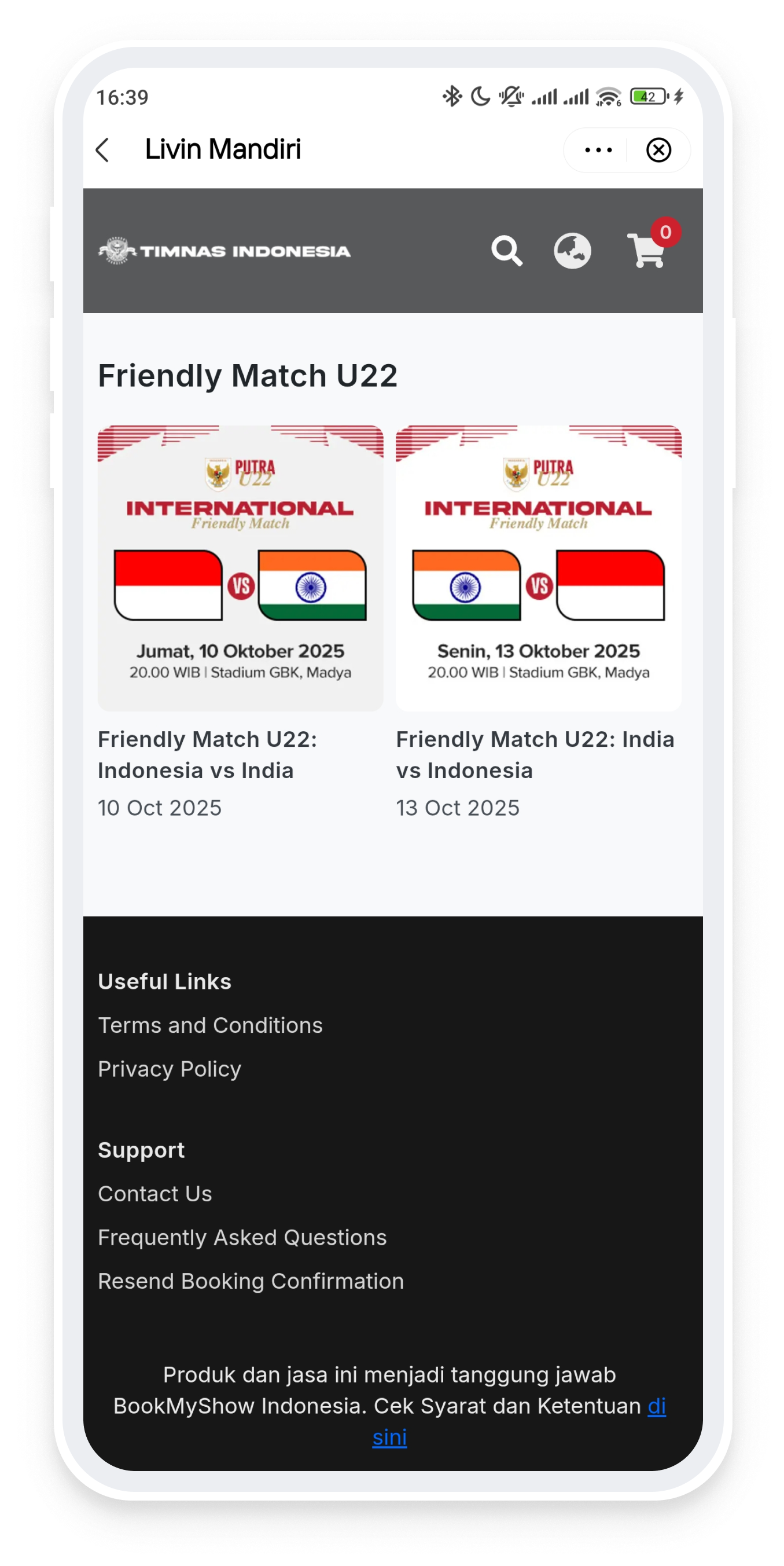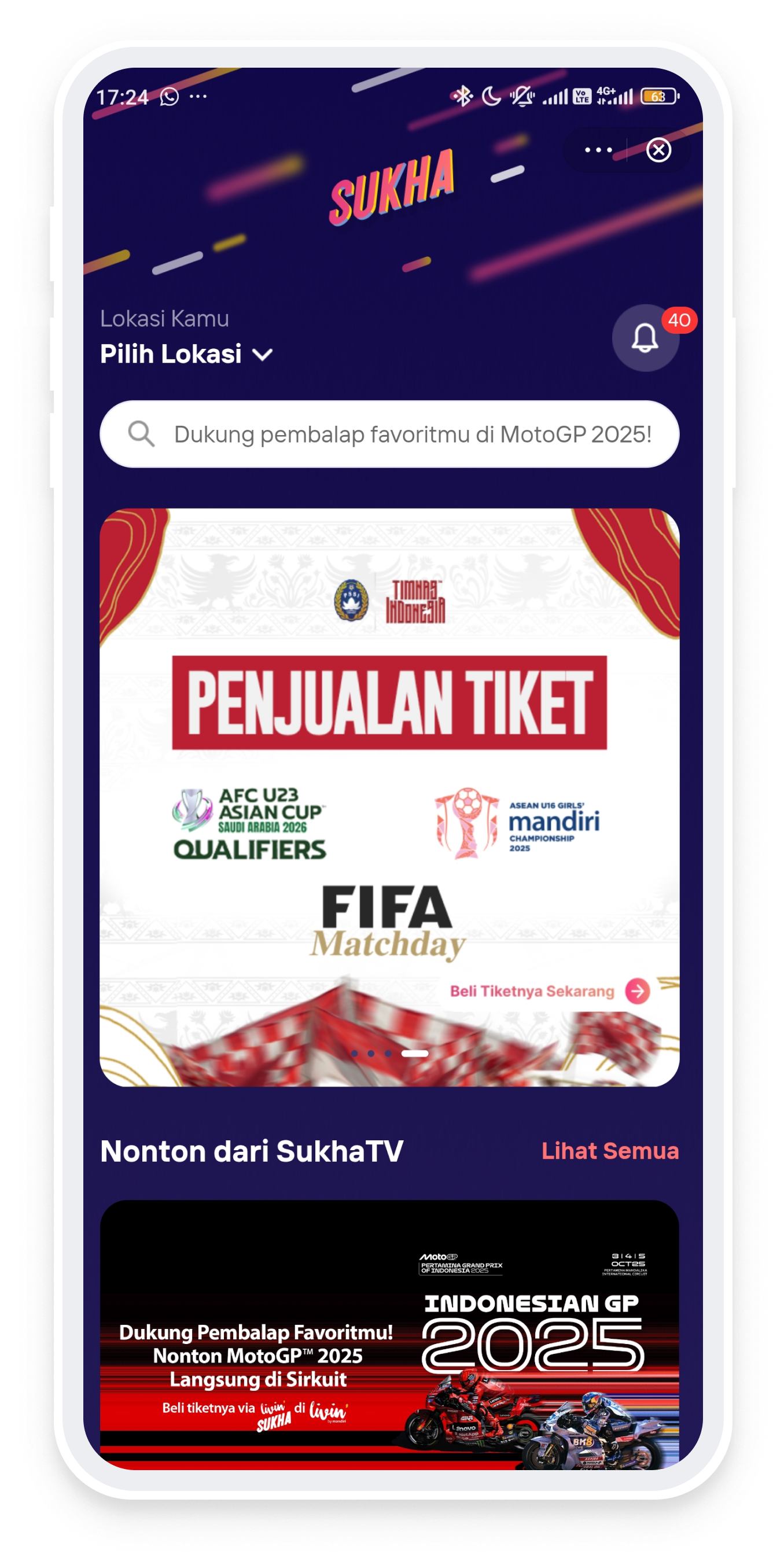 - Pembelian Tiket : International Friendly Match melalui Fitur Sukha di Livin’ by Mandiri