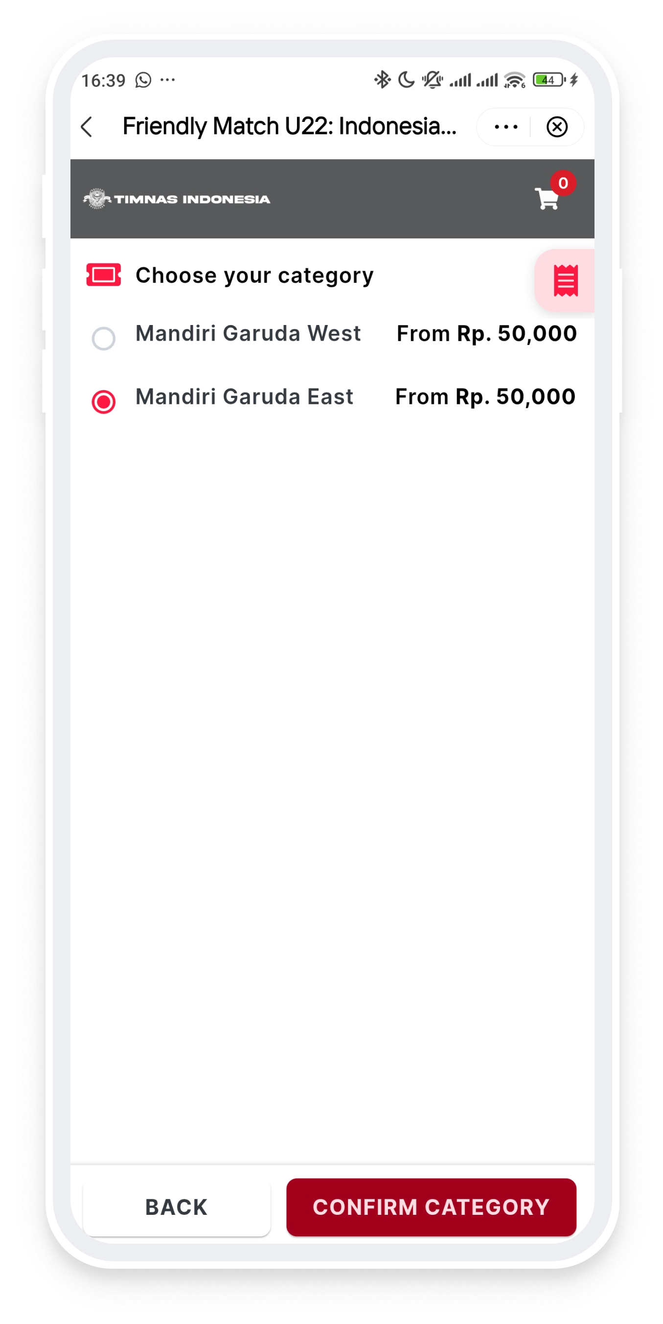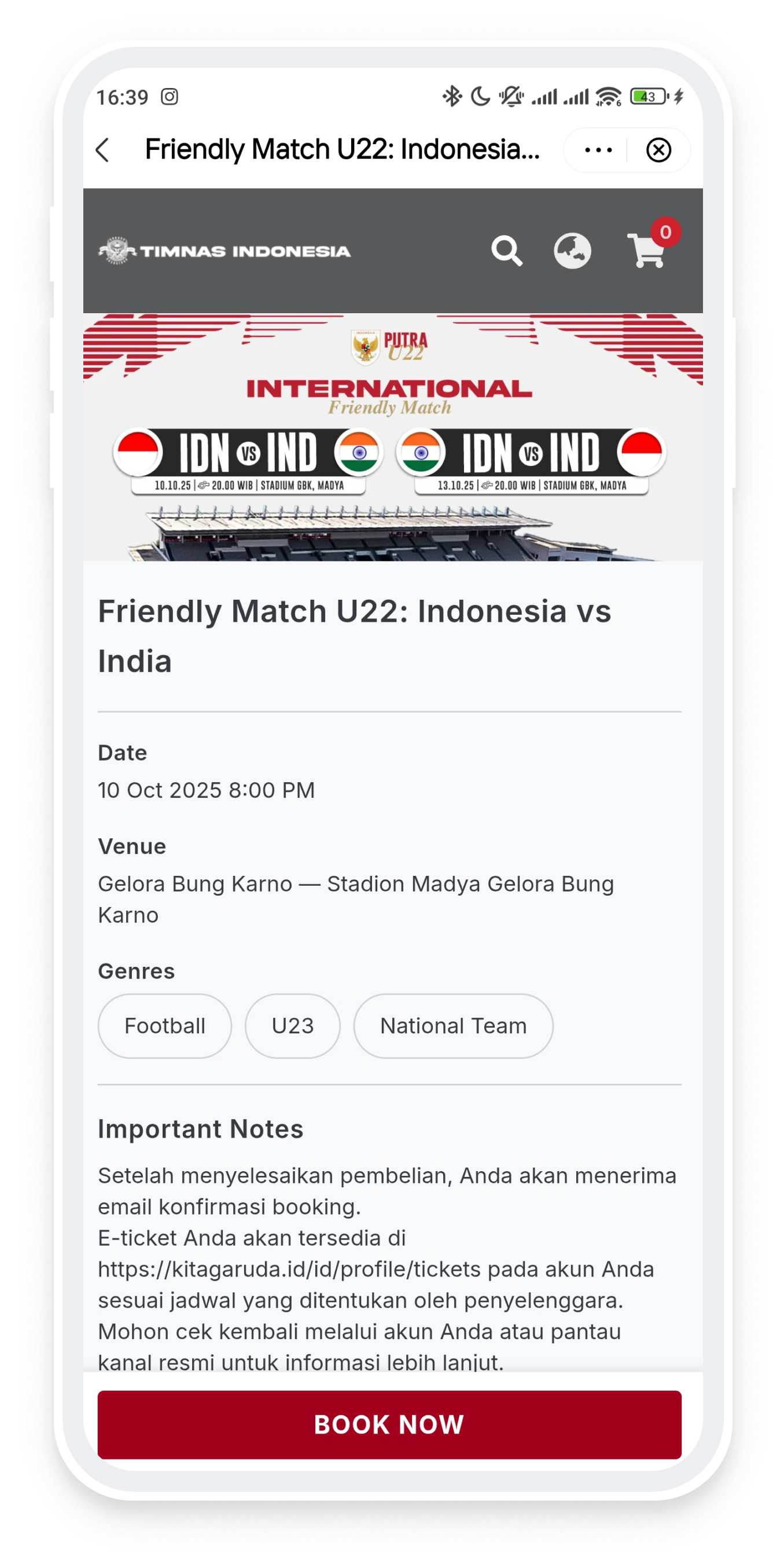 Berikut adalah detail tiket resmi dari Pertandingan Timnas Indonesia di Livin Sukha :