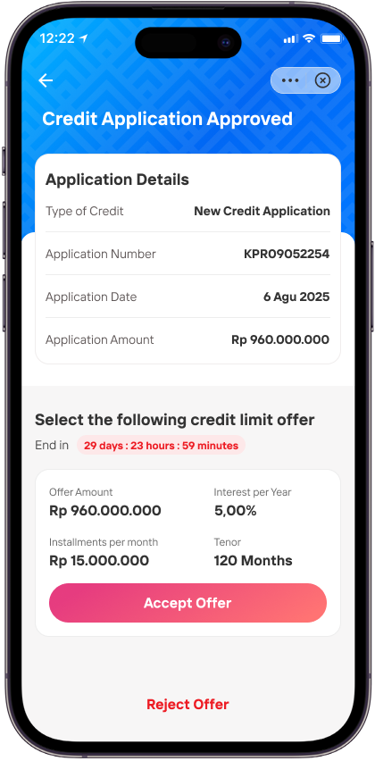 After selecting the offer, you will be contacted by the Bank Mandiri Relationship Manager to schedule the credit agreement.