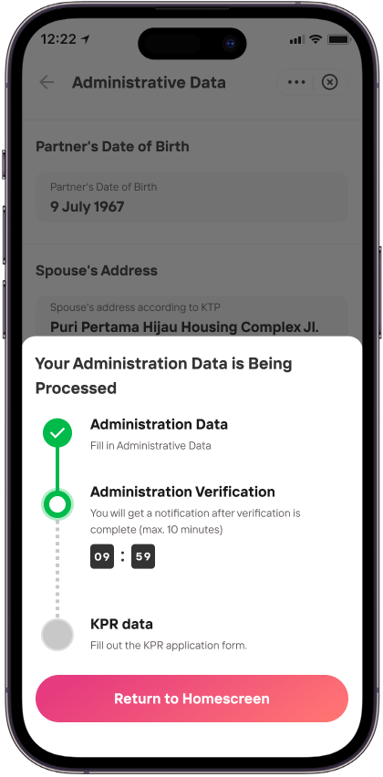 The Livin' KPR main page will show that administration verification is still ongoing.