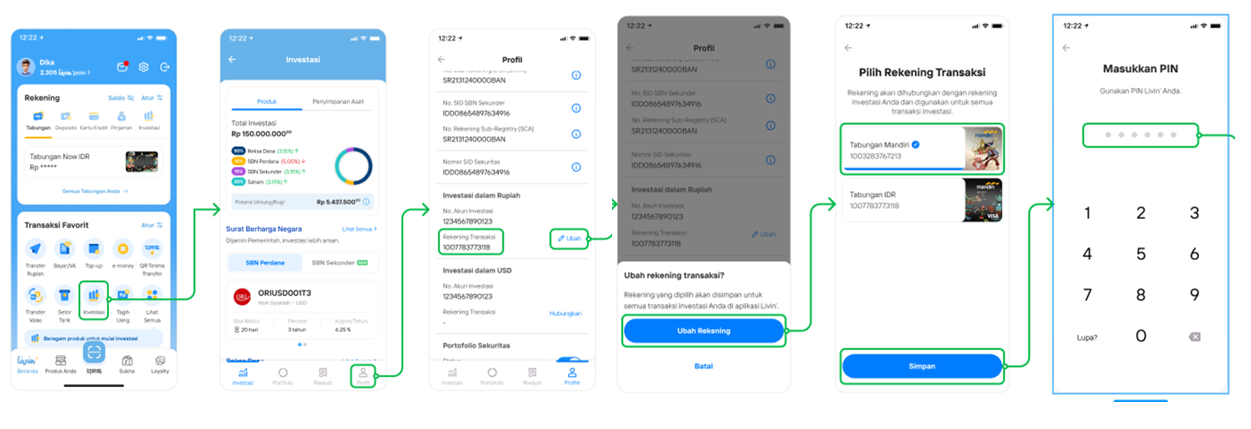 Pengkinan data terkait investasi Reksa Dana dan SBN yang dapat dilakukan melalui aplikasi Livin’, adalah: