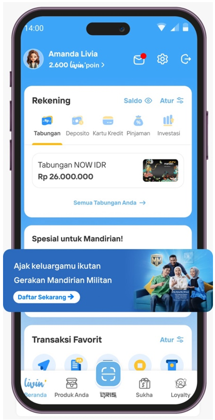 - Sudah menjadi pengguna Livin’ by Mandiri