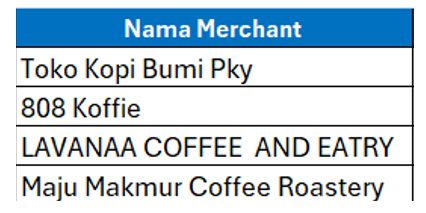 Merchant yang terdaftar dalam program adalah sebagai berikut :