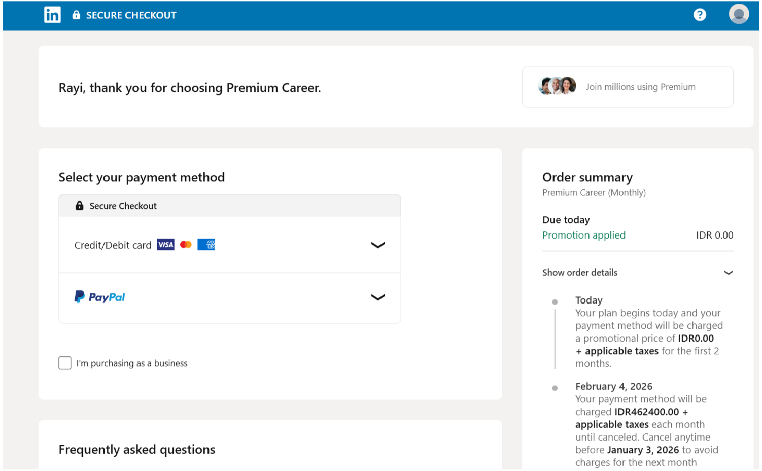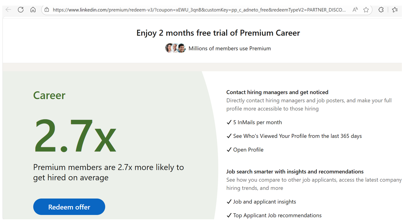 Bonus 2 bulan berlangganan LinkedIn Career Premium