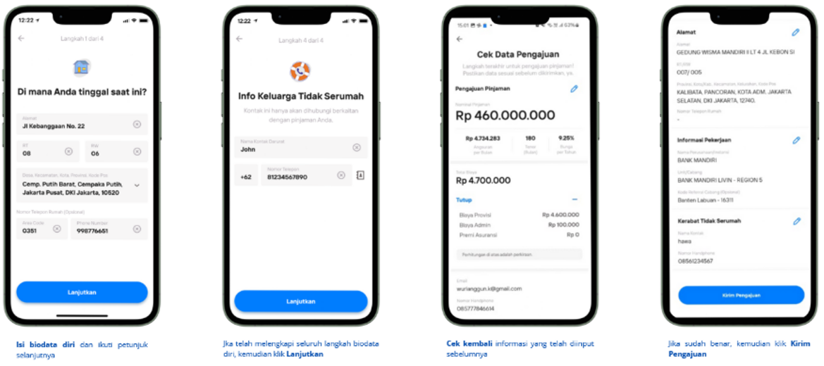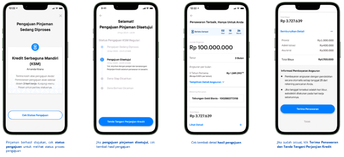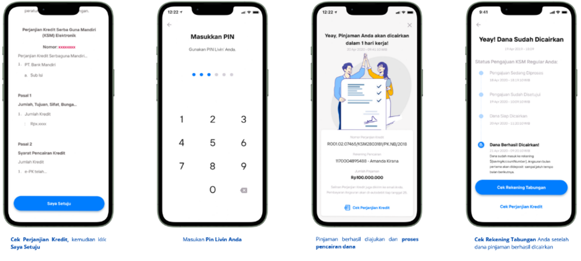 - Pengajuan aplikasi dapat dilakukan melalui aplikasi Livin’ by Mandiri.