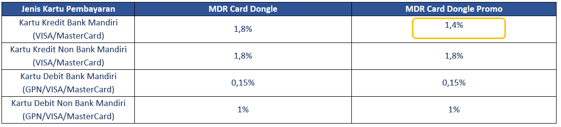 - Special Rate MDR (Merchant Discount Rate) Kartu melalui Card Dongle Livin’ Merchant