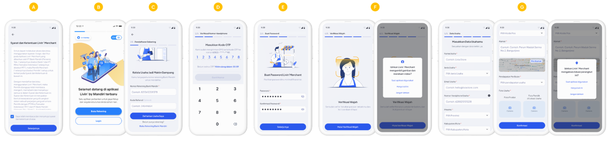 - Livin' Merchant dapat digunakan tanpa perlu datang ke kantor cabang Bank Mandiri