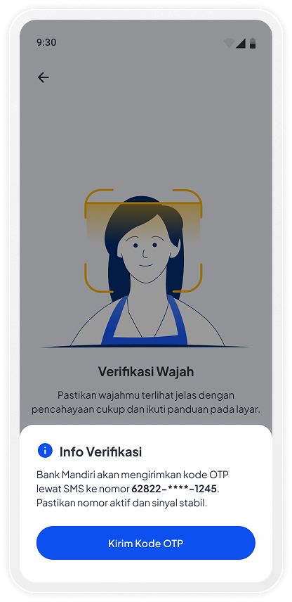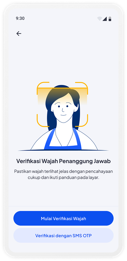 Untuk memulai verifikasi, tap Mulai Verifikasi Wajah atau dapat memilih opsi verifikasi kode OTP
