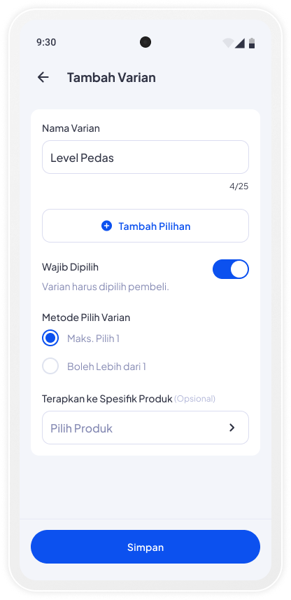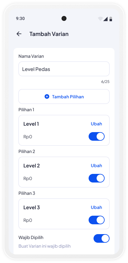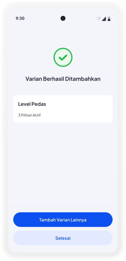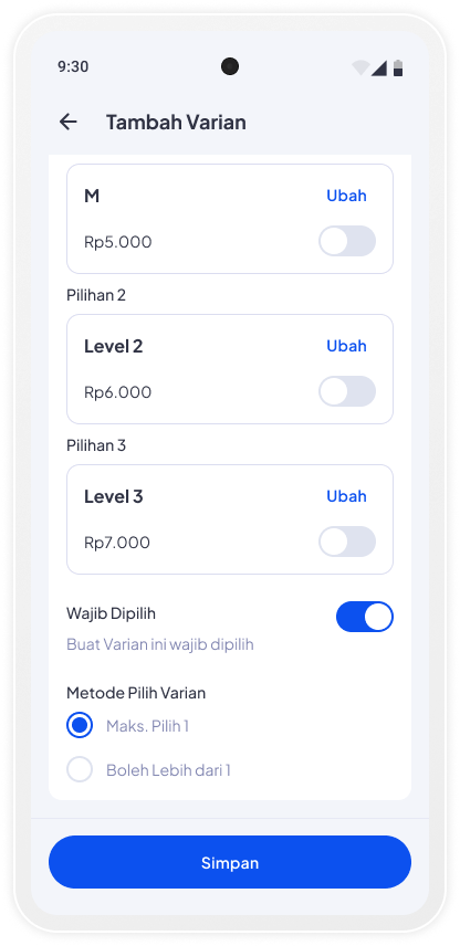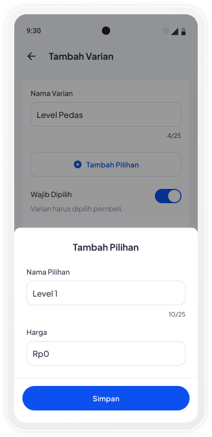 Makin lengkap! Tambahkan varian produkmu, pelanggan bebas pilih sesuai selera.