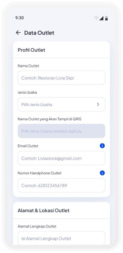 Lengkapi Data Outlet sesuai dengan outlet yang akan anda tambahkan