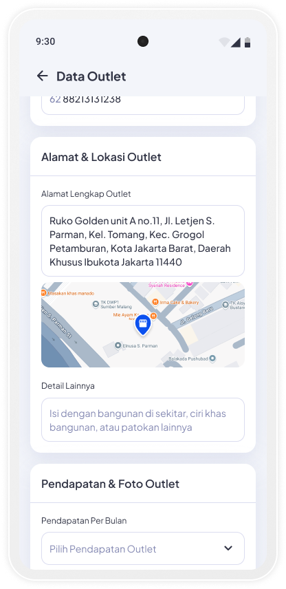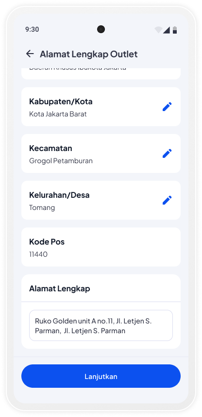 Lengkapi alamat usaha mulai dari Provinsi hingga alamat lengkap lalu tap Lanjutkan