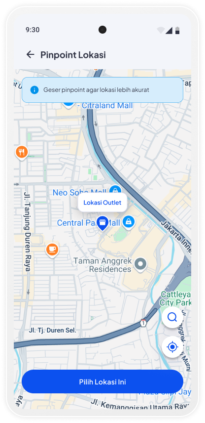 Geser pinpoint atau cari titik sesuai alamat yang diinput sebelumnya