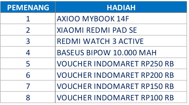- Reward yang akan diterima oleh pemenang adalah sebagai berikut :