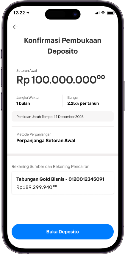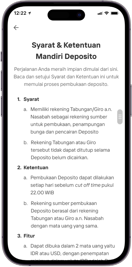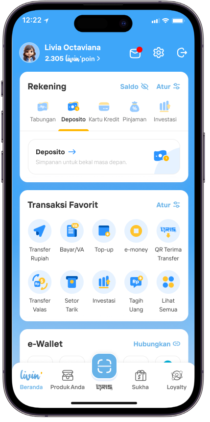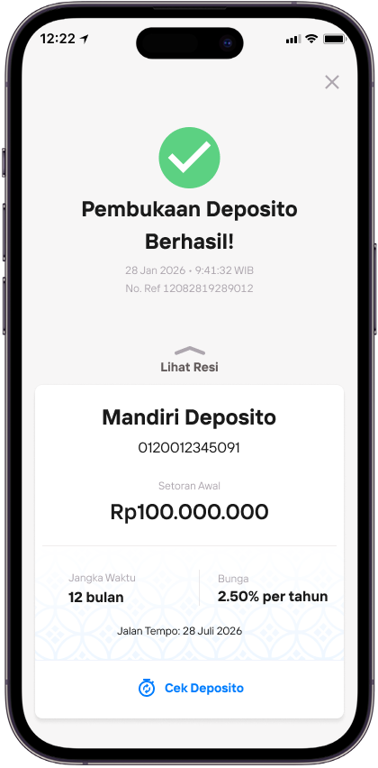 The Deposit feature in Livin' by Mandiri can be used to open, maintain, withdraw and close deposits.