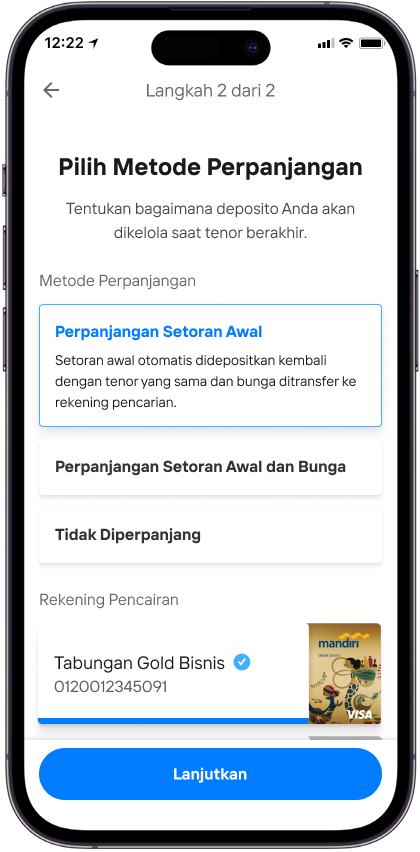 Customers can change the disbursement account in the deposit account details. New Livin' by Mandiri will display all accounts that are eligible for disbursement. Changes can be made up to H-1 at 22.00 WIB before the due date.