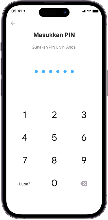 Masukkan PIN Livin’ Anda untuk proses verifikasi.