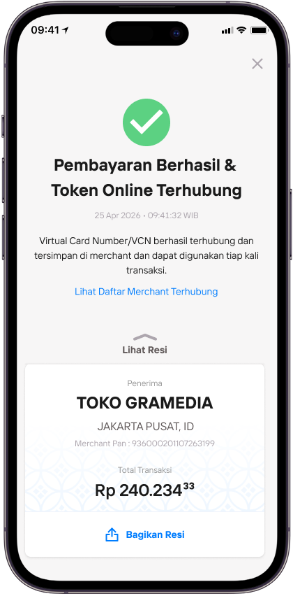 - Pembayaran berhasil dan nasabah akan menerima resi di Livin'