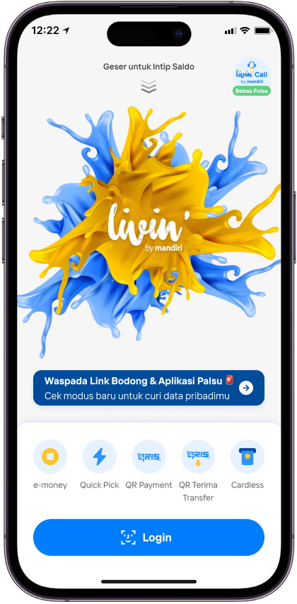 - Memiliki akun aktif dan Login pada aplikasi Livin' by Mandiri