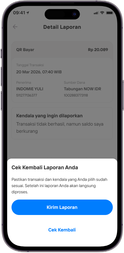 Untuk kendala QR Bayar, cek detail transaksi yang ingin dilaporkan