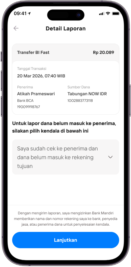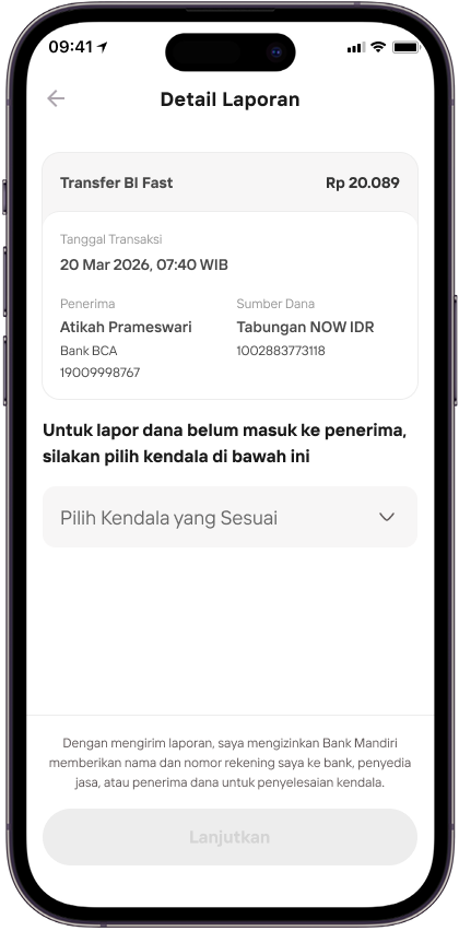 Saat ini, transaksi yang dapat dilaporkan melalui Livin' Call by Mandiri - Laporkan Kendala Transaksi adalah Transaksi Transfer BI-Fast dan QR Payment yang dilakukan melalui aplikasi Livin’ by Mandiri dan memenuhi persyaratan untuk dilaporkan.