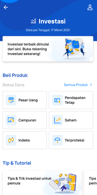 - Klik icon “Investasi” pada home screen Livin’