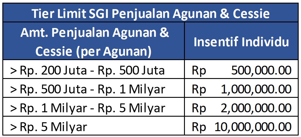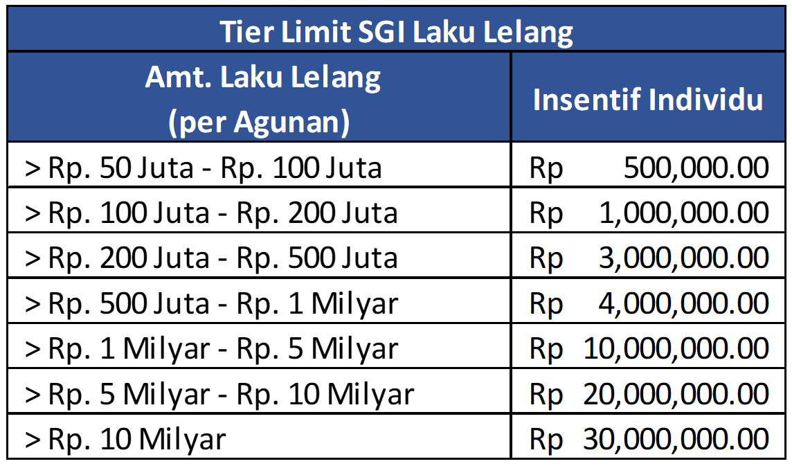 *Tiering insentif individu terbaru berlaku untuk laku lelang bulan September s.d bulan Desember 2025.