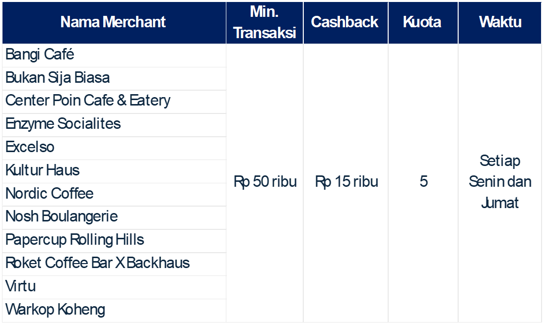 - Cashback dalam bentuk saldo akan dikreditkan ke rekening nasabah penerima program akan diberikan pada hari Jumat di minggu depan