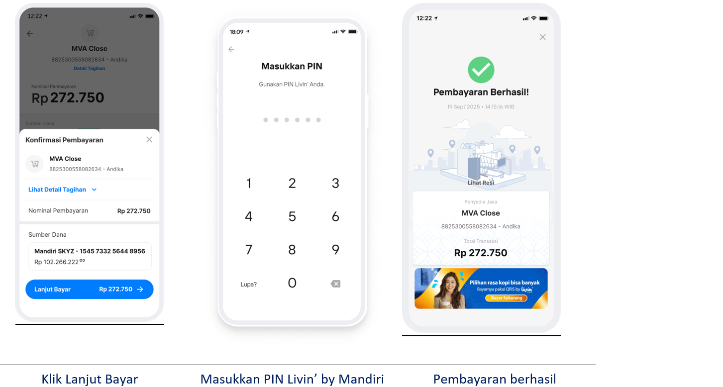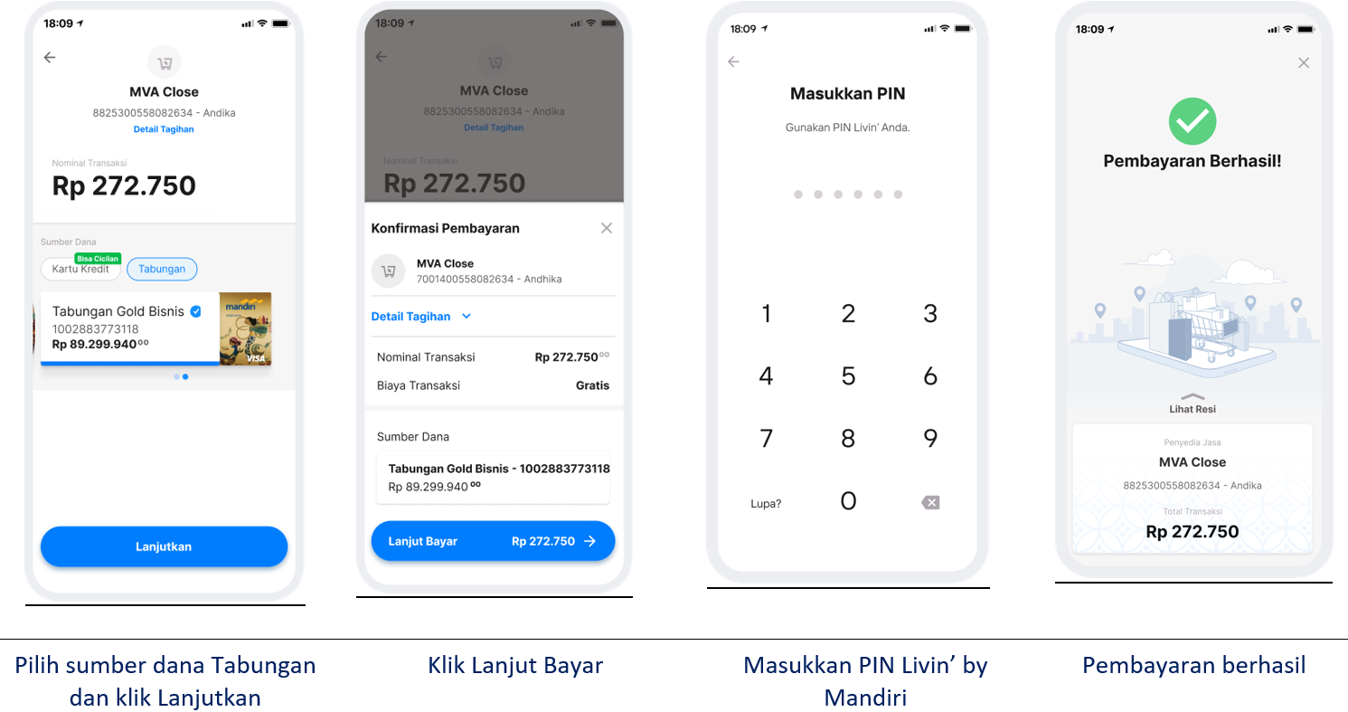 - Pembayaran Tiket melalui Fitur Sukha di Livin’ by Mandiri (Virtual Account – Sumber Dana: Tabungan Mandiri)