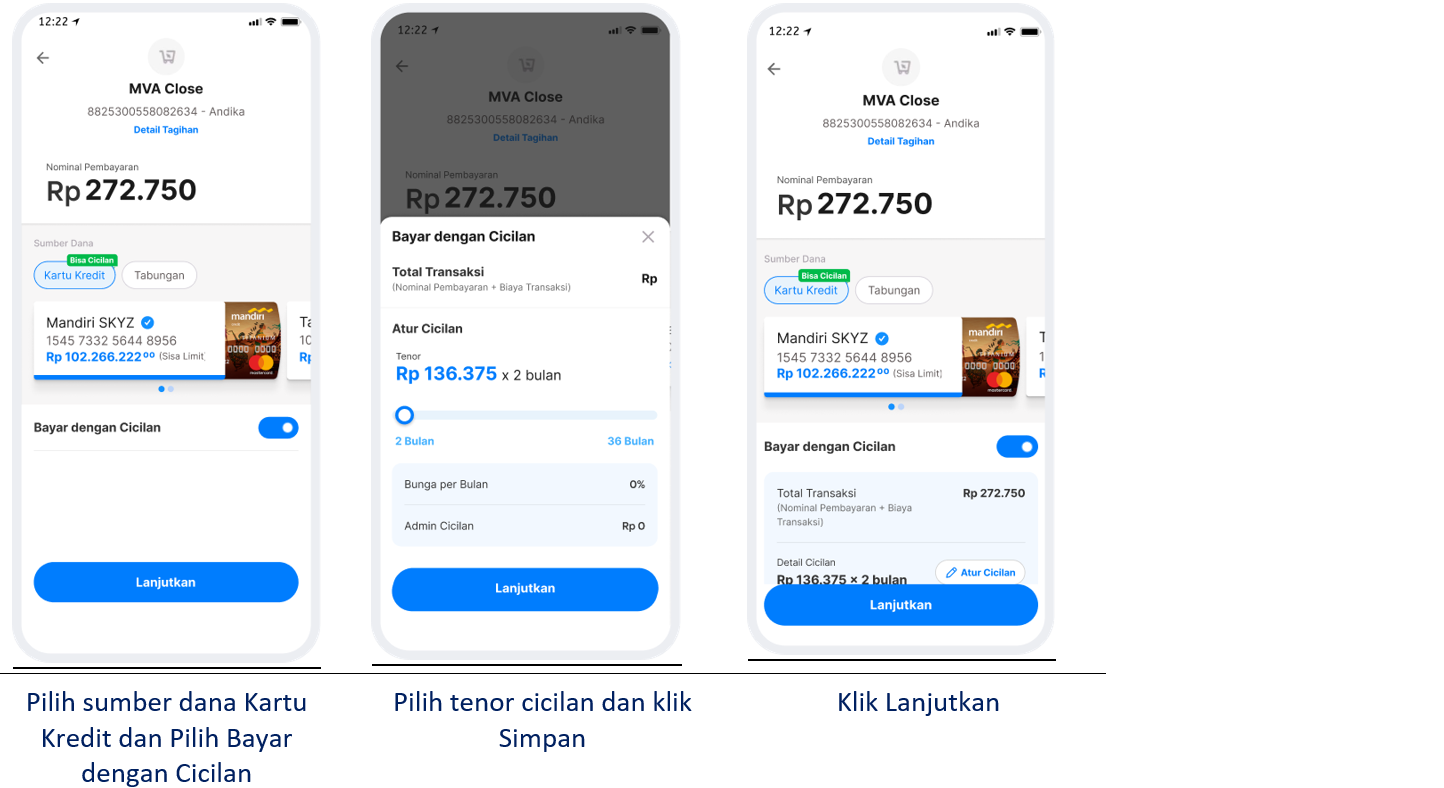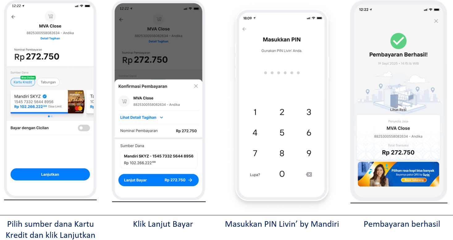 - Pembayaran Tiket melalui Fitur Sukha di Livin’ by Mandiri (Virtual Account – Sumber Dana: Kartu Kredit Mandiri Cicilan)